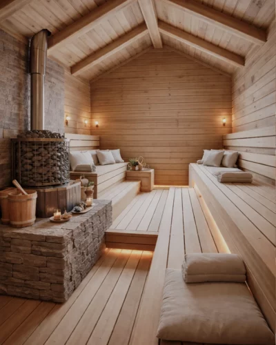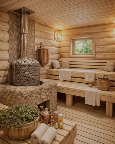 Подбираем исключительно натуральные материалы (ель, ольха, липа, можжевельник, гималайская соль, натуральный камень) с учётом эстетики, функциональности и бюджета.