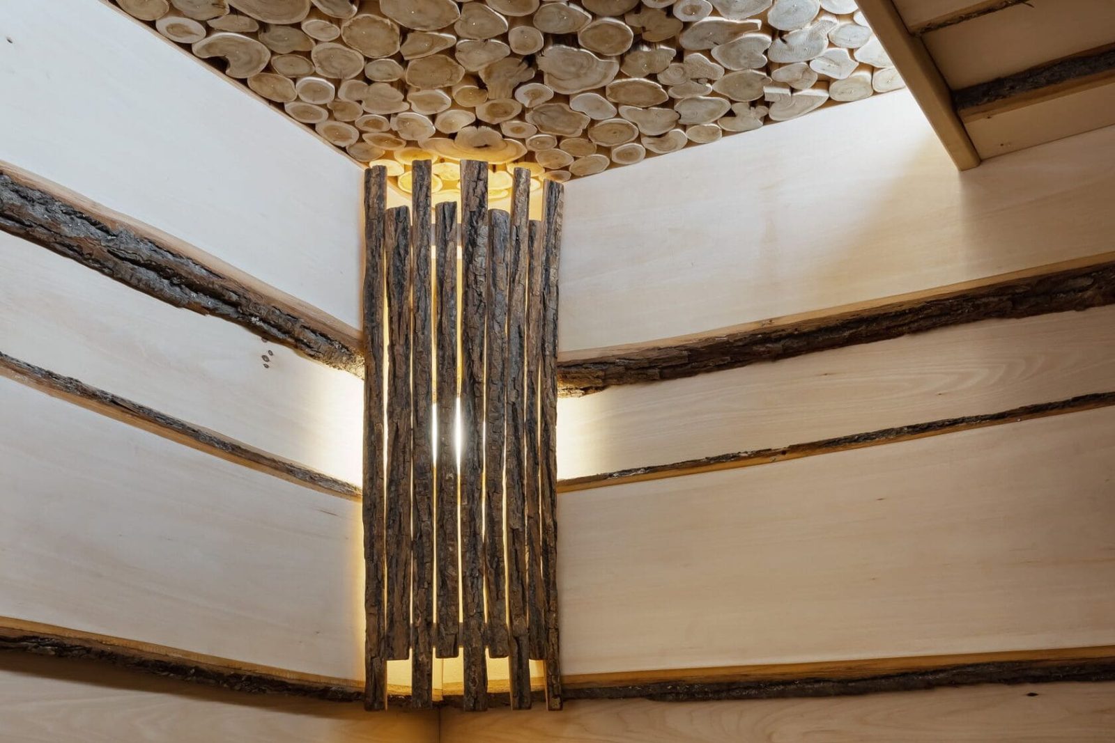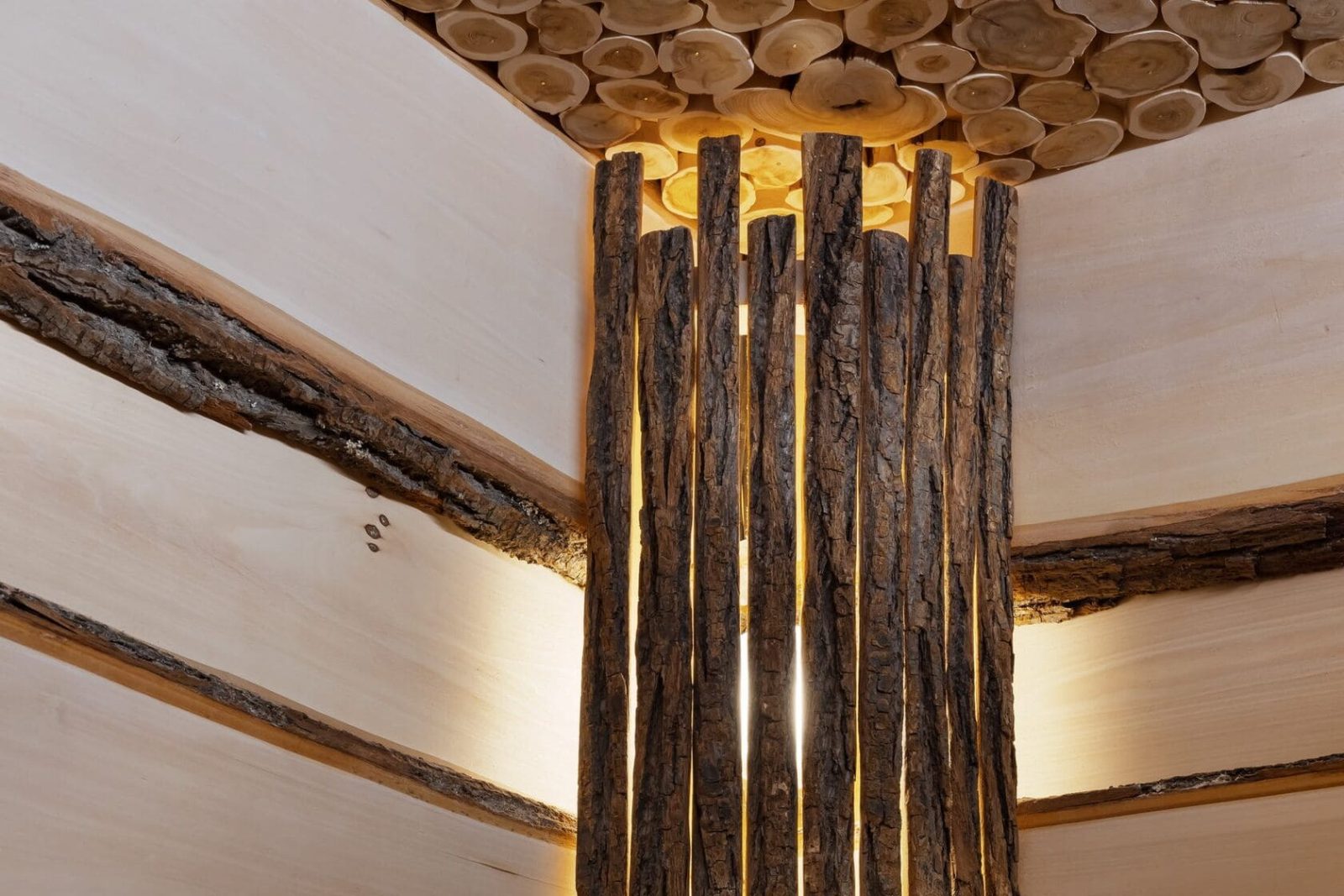 В проекте использована натуральная древесина с выраженной фактурой и природные материалы для создания тёплой, аутентичной атмосферы.