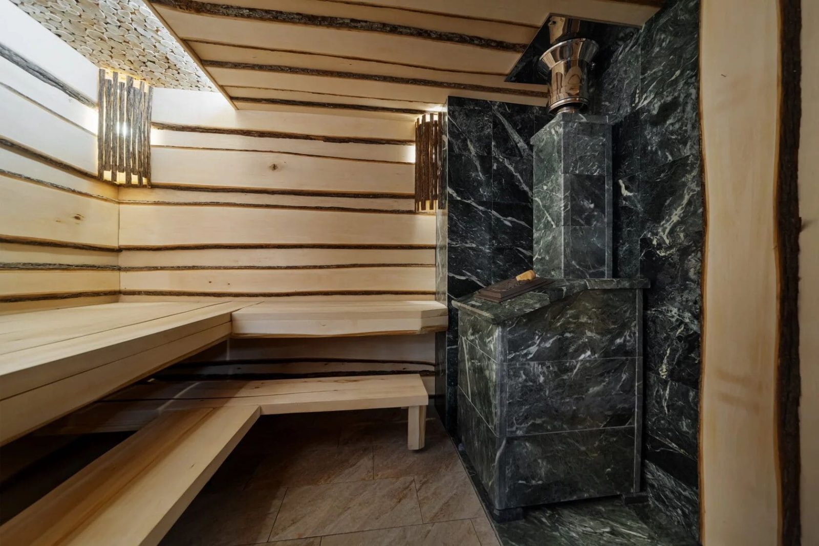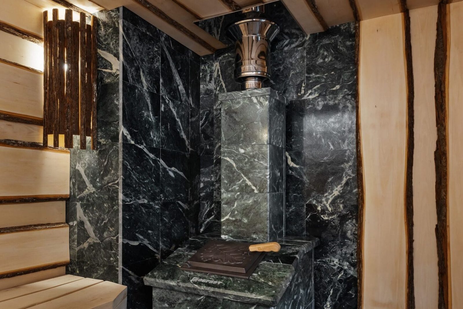 Эта парная стала воплощением идеи живого уюта: природные материалы, продуманная эргономика и атмосферное освещение создают идеальное пространство для отдыха и восстановления.